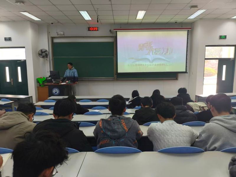 随后播放的党的二十届四中全会精神学习视频,围绕全会审议通过的重要文件展开解读,系统阐述了“十五五”时期我国经济社会发展的指导思想、主要目标与重点任务,聚焦科技创新、产业升级、绿色发展等关键领域,清晰勾勒出推进中国式现代化建设的实践路径,更点明了青年在科技攻关、基层建设等领域的重要发力点。观影过程中,全体同学全神贯注,认真记录要点,深切感悟全会精神的深刻内涵与总书记贺信中的精神力量。