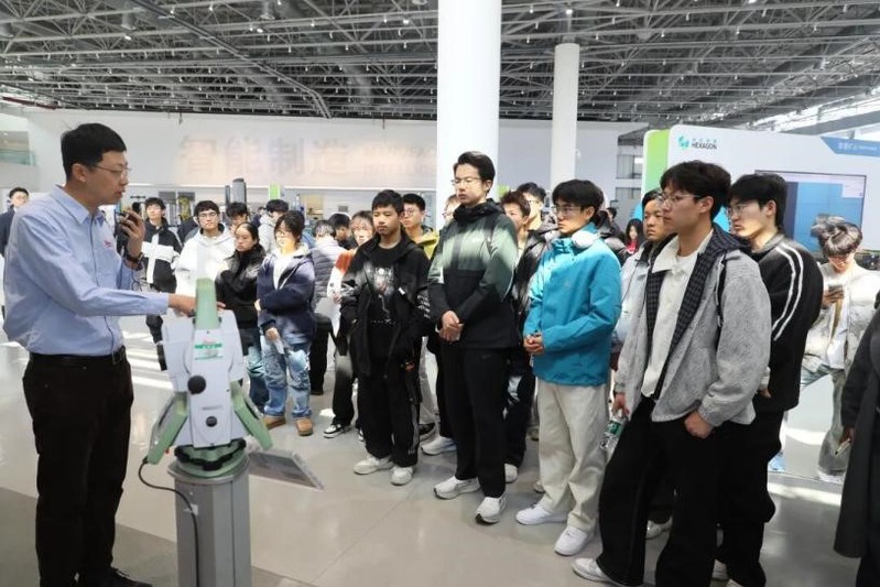 会议期间,测绘工程专业2025级学生们走进海克斯康智慧产业园实地参访,近距离观摩高端测量装备研发与前沿技术应用场景,直观感受测绘技术在高端制造、智慧城市、海洋开发等领域的创新实践,切实打通了理论知识与工程应用的壁垒,真切体会到测绘技术作为城市发展“数字基座”的重要作用。