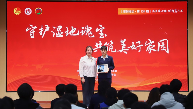 赵亚杰介绍了卫星遥感、无人机等智慧监测技术在湿地保护中的应用,讲述了为习近平总书记汇报生态保护成果的经历,勉励在场学子将个人理想融入国家生态战略,扎根基层、深耕坚守,在平凡岗位书写不凡业绩。互动环节中,她耐心解答学子成长困惑,传递生态保护的责任与担当。活动最后,学生代表为赵亚杰送上手绘画像,参会学子纷纷表示深受触动,深刻领悟到生态文明建设的深刻内涵。